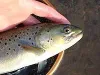 This is the end that counts to to most anglers: where the mouth is and where the fly is supposed to go. All these fish opened theirs over a hook, and they paid for it with a portrait. Pictures of fish from the very small sand eel to the very large steelhead.