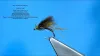 Olive Thread 8/0 Tail Holo Tinsel Fluro Yellow Soft Dubbing Creamy White Organza Ribbon for Body Sooty Olive Deer Hair + Yellow Partridge Feathers for Head