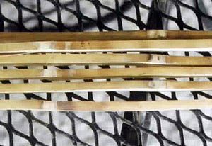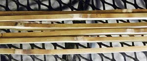 best pieces you have for your butt section. Set aside any pieces which have obvious discolorations. Repeatedly flex each strip to make certain there are no weak spots. The bamboo should bend consistently from end to end, with no obvious soft spots. Choose the six best pieces you split out for butt sections, and bundle them together. Don't discard the others!!