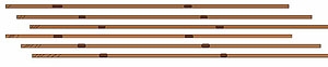 Using a fine-toothed hacksaw, Coping saw, or X-acto saw, cut each of the four pieces (1, 2, 4, 5). Begin your cut on the enamel side to prevent tearing out the power fibers. Immediately mark the ends of all six strips with a black permanent marker. (I use red for tips and black for butts.) Marking the ends prevents you from getting things turned around later and wondering which end is which. Cut the tip ends of strips 2, 3, 5, and 6 - but don't mark the tip ends. You may need to re-number the strips if your trimming removed the original markings. Repeat the staggering and numbering process for each bundle of tip strips, and we will be ready to start straightening and flattening nodes.