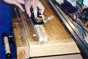 Good rod making books discuss ways to get your plane in proper working order. Several good web articles are also available. Email me (Maker@canerods.com) and I will point you in the right direction. Briefly, you must tune your plane by truing and flattening its sole. Most rod makers replace the original Stanley blade with one which is more readily honed to a razor sharp, long lasting edge. Learning to quickly and consistently hone your plane iron to a keen edge is the single most demanding task in rod making. Although I'm only touching on this subject here, overstating the importance of getting your plane in perfect shape, and your irons much sharper than your razor is impossible. You simply must work on this skill until you perfect it. No shortcuts.