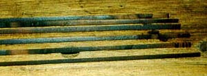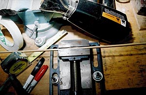 Traditionally rod makers filed away all humps at the nodes and straightened the twists and turns over the flame of an alcohol lamp. Although the task can be accomplished that way, excessive filing, heating and bending can gouge and scorch the bamboo at the already weak nodes. Though the idea isn't original with me, I've found a way to flatten the humps and straighten the nodes all in one quick and easy step. As with every single step of making rods, let me urge you to practice on scrap strips before you attempt this on your first rod.