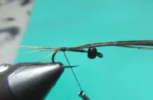 6. Lift pheasant tail fibres up and dub thread and under the pheasant tail fibres to bead.