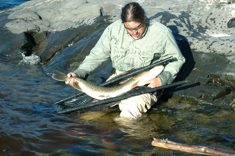 Jocelin admiring his trophy pike (2 miles rapid pool)