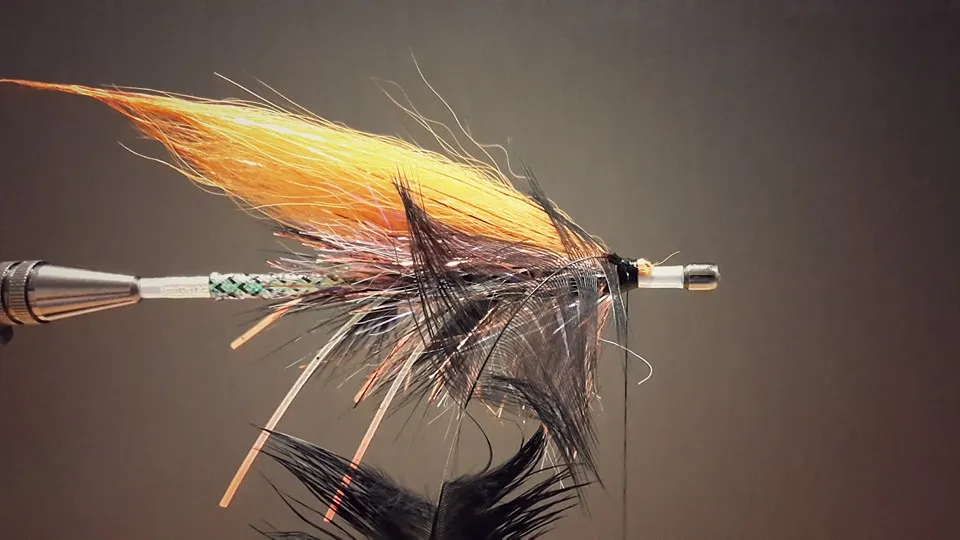 Tie in the third hackle. Again tip first, shiny and curved side forwards.